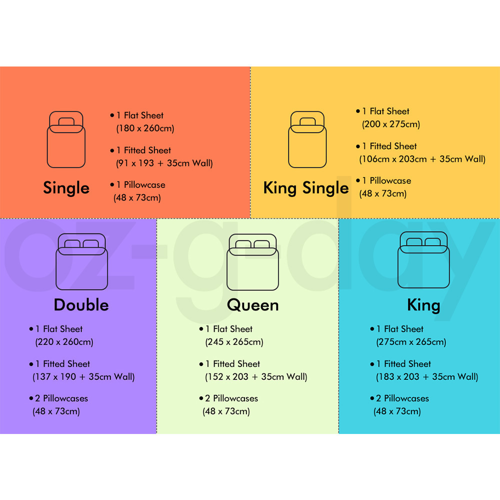 * 1 x Fitted Sheet: 91cm x 193cm + 35cm